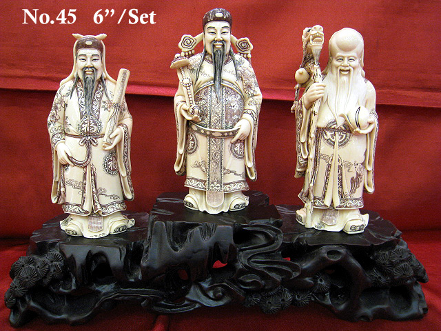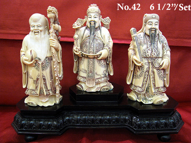 Mammoth Tusk Ivory Carvings (3 Lucky Men 褐窼关琍)